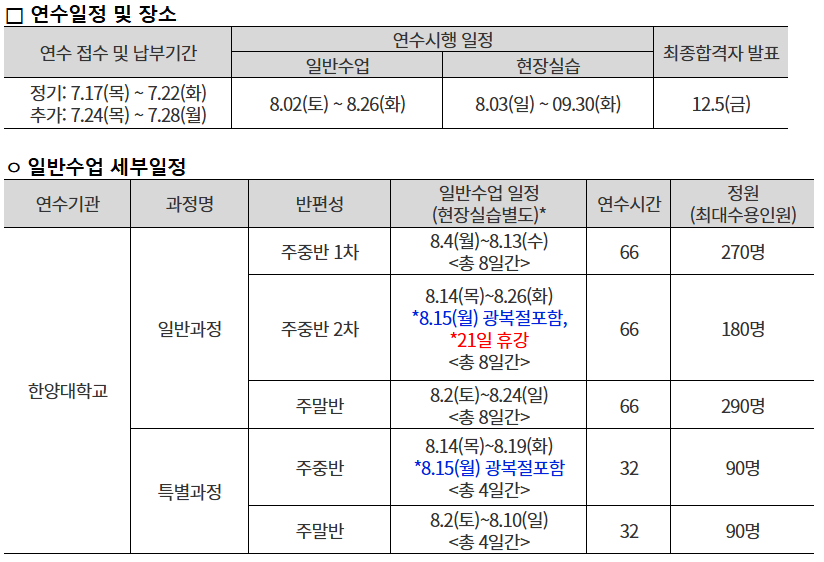 안녕하세요. 한양대학교 스포츠지도사연수원입니다.
